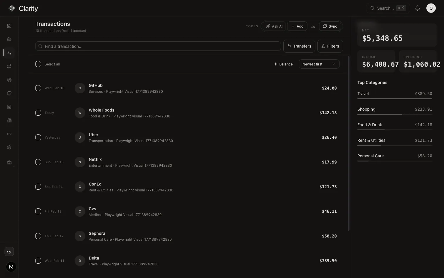 Track core accounts—banks, crypto, and investments